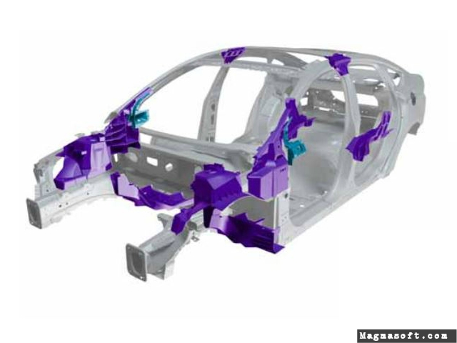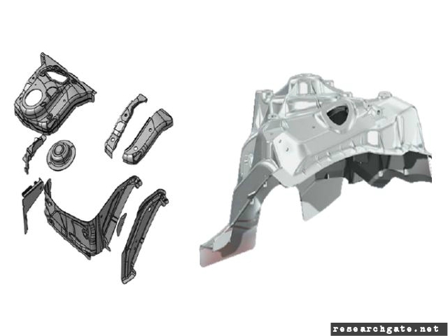 - 3 different sheet steel part is eliminated and instead of them one single die casted shock tower is developped.