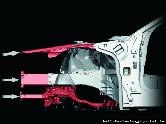 - Advanced deformable shoc absorber plastic parts and steel beam are integrated.